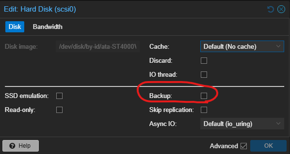 (Optional) Most of the time, I disable backup for the physical disk (for personal reasons) by unchecking the backup