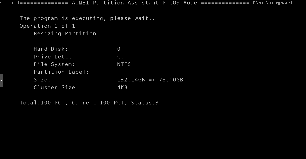 After confirm, program will ask for restart (because we’re resizing OS partition), select PreOS mode