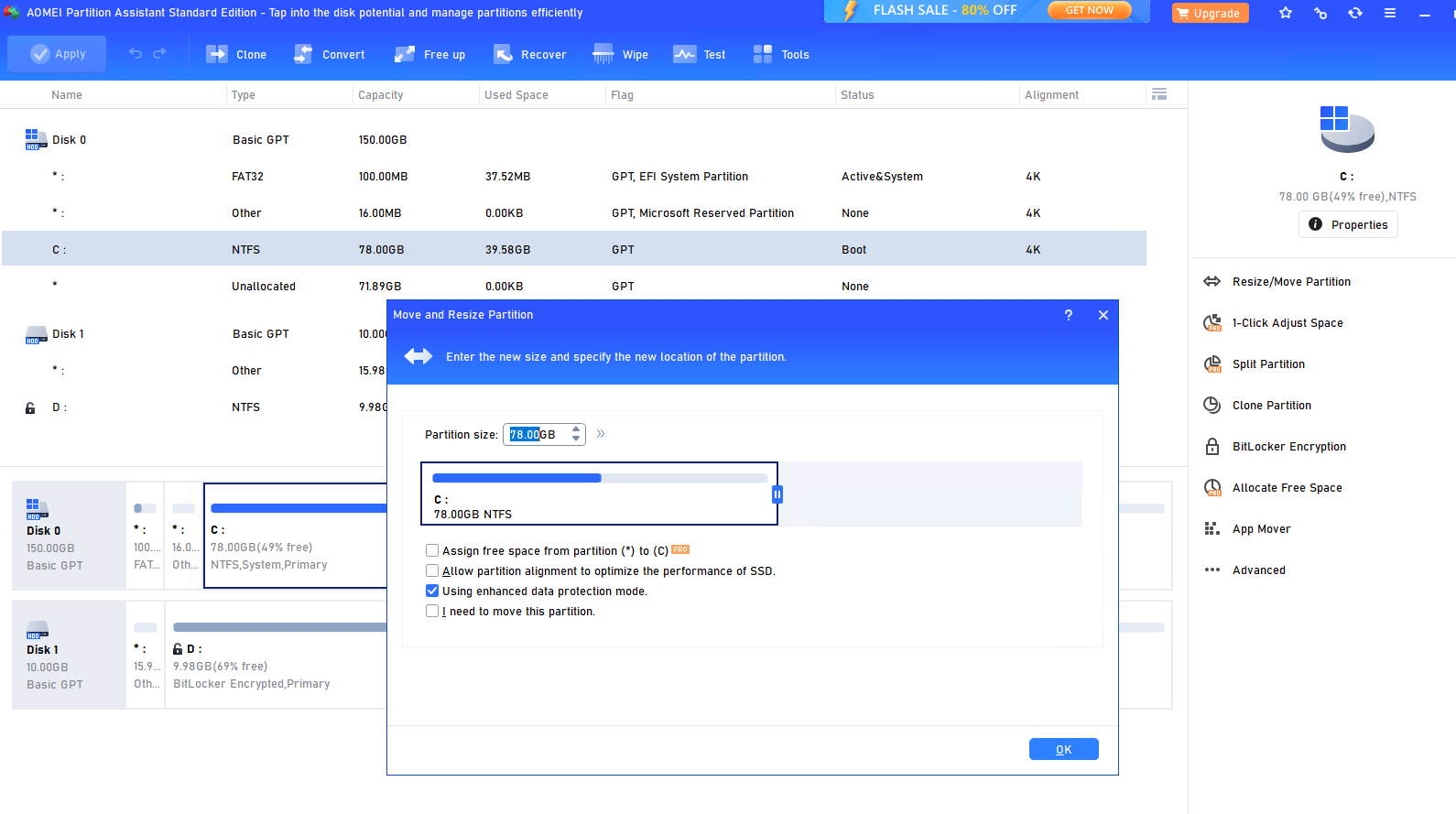 After removing the recovery partition, you will be able to resize or move the partition as needed.