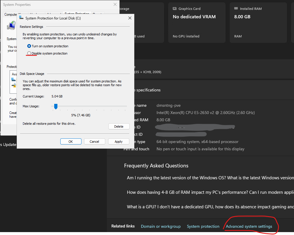 Go to Settings -> About -> Advanced system settings -> System Protection